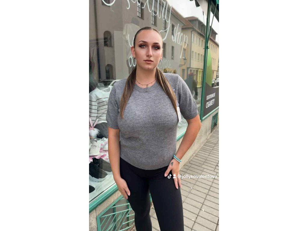 Krátký svetr s krátkým rukávem, ideální na podzimní vrstvení i k džínám nebo sukni.