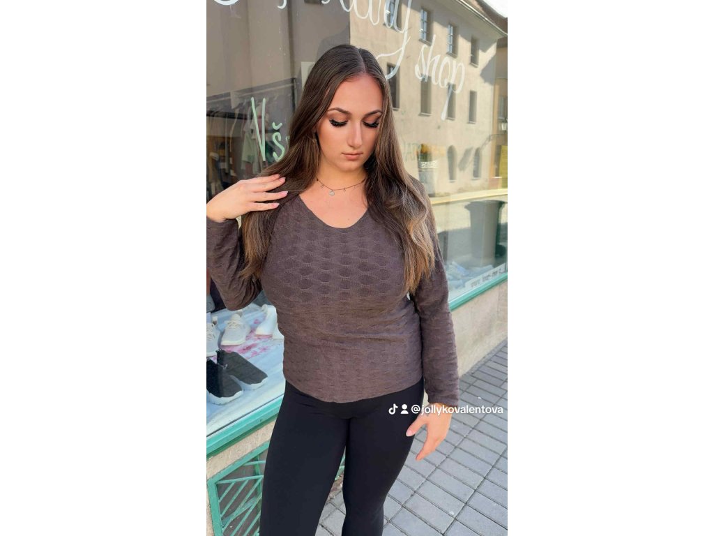 ✨Stylový hnědý top s dlouhým rukávem a jemným vzorováním✨