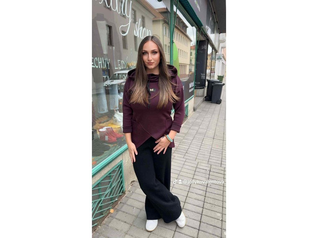 Chceš mikinu, která není jen obyčejná, ale dodá tvému outfitu šmrnc? 🤩 Tahle vínová kráska je přesně ten kousek, který ti nesmí chybět ve skříni! 💃