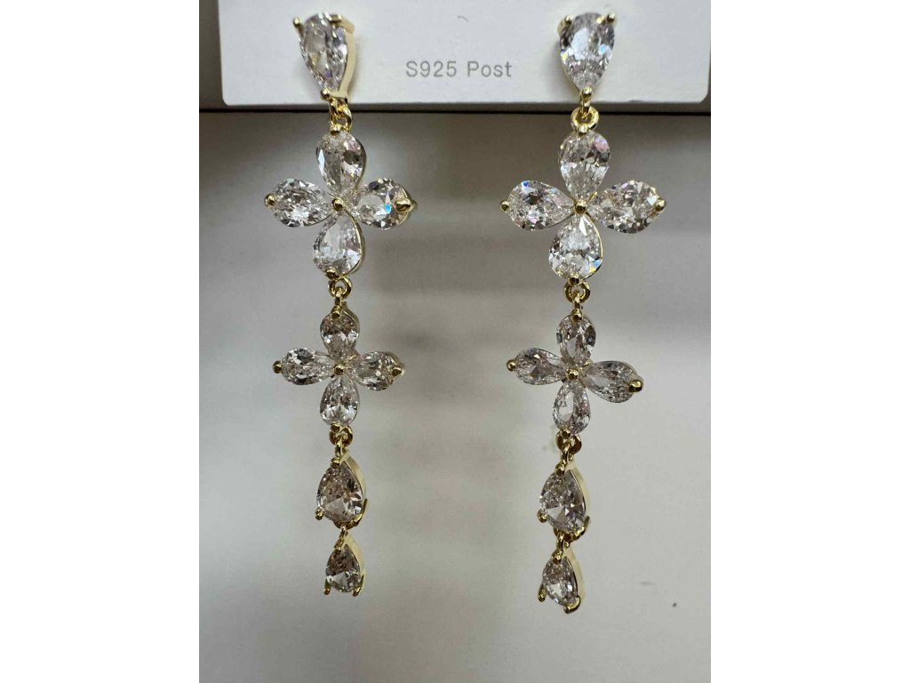 Visací náušnice osazené třpytivými křišťálky ve tvaru kapek a květů. Luxusní vzhled, kvalitní provedení a decentní elegance, která se hodí ke každé příležitosti – od svatby po večírek.